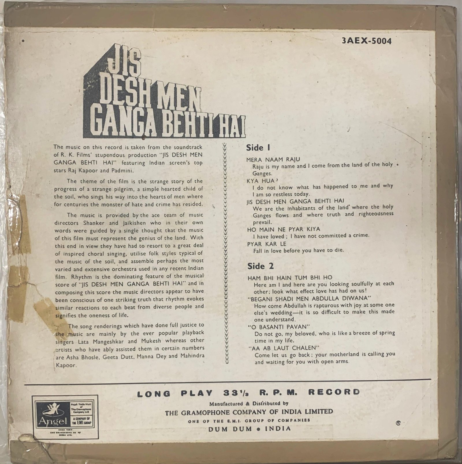 LP Catalogue No: 3AEX 5004